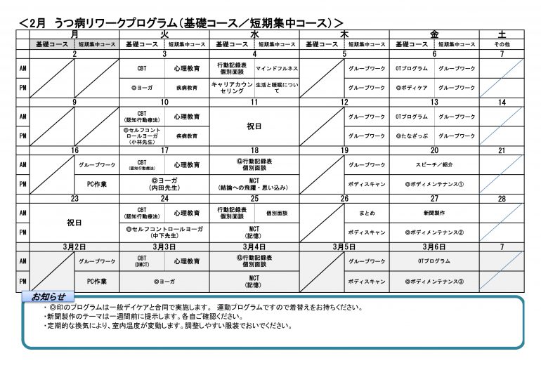 認知行動療法・グループワークを中心としたコースです。