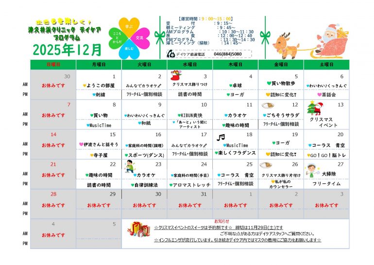 精神科の治療を受けている人が、同じ悩みをもつ仲間と共に過ごす生活と活動の場です。ご利用の際は、主治医にご相談の上、ご連絡ください。