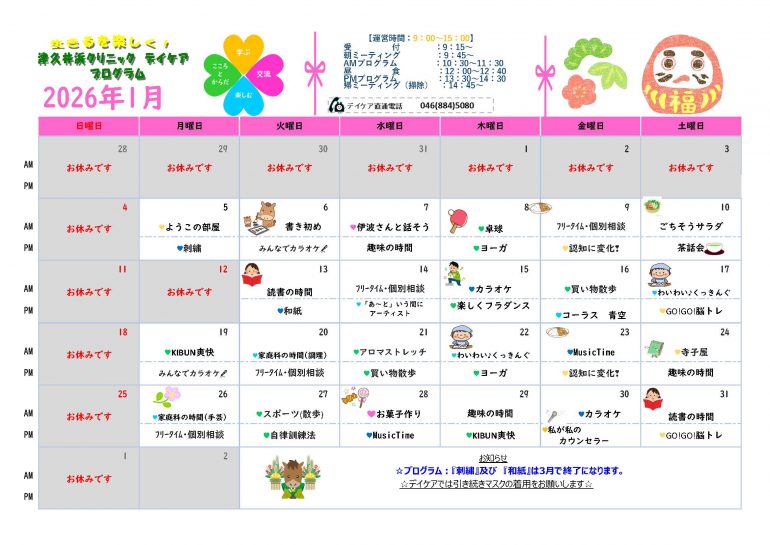 デイケアのページはこちら>>>令和8年1月プログラム表