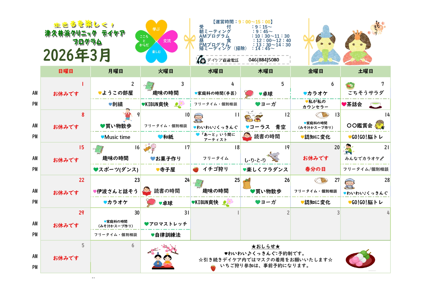 精神科の治療を受けている人が、同じ悩みをもつ仲間と共に過ごす生活と活動の場です。ご利用の際は、主治医にご相談の上、ご連絡ください。